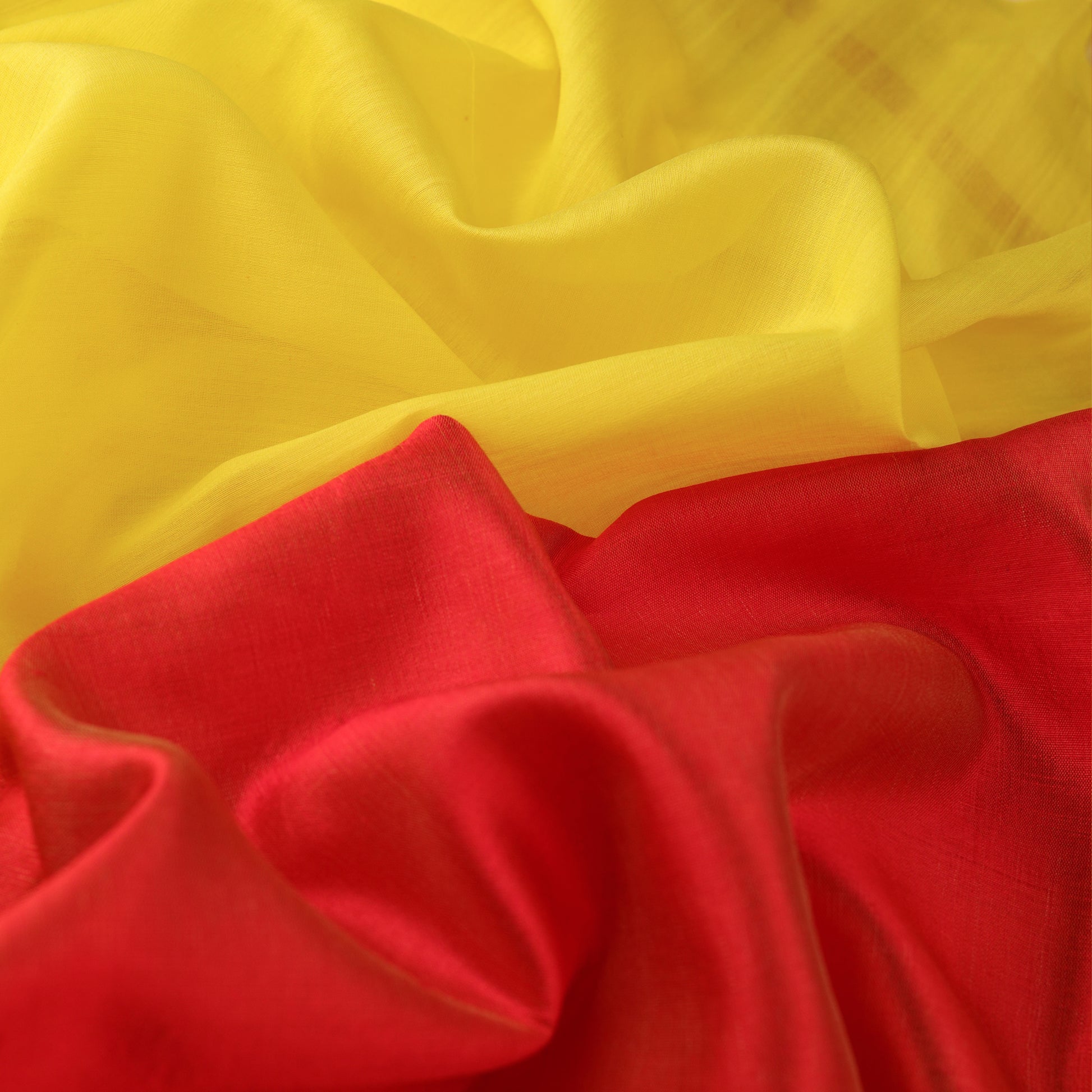 BASANT - Bright Yellow Cotton Silk Chanderi Saree with Contrast Red Pallu