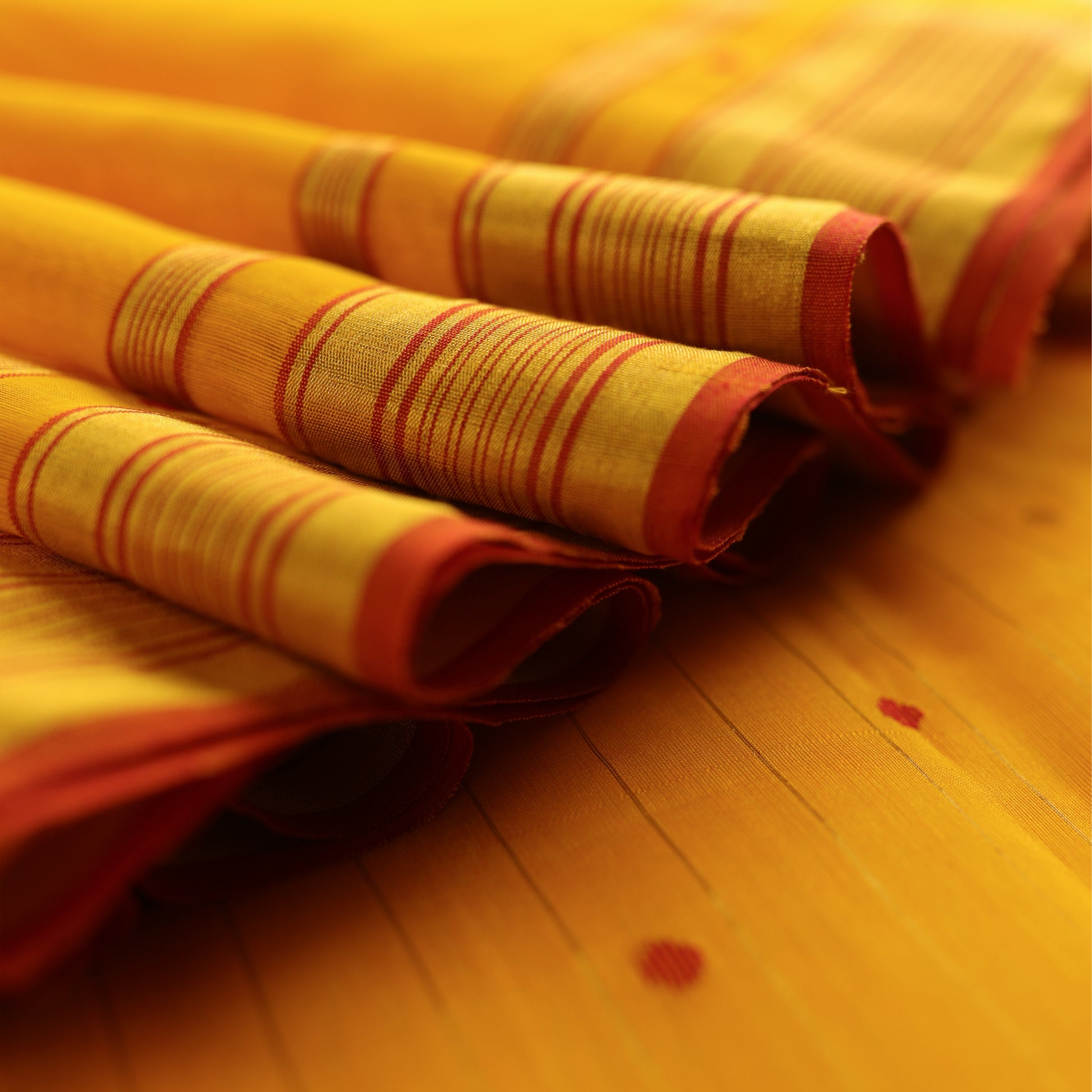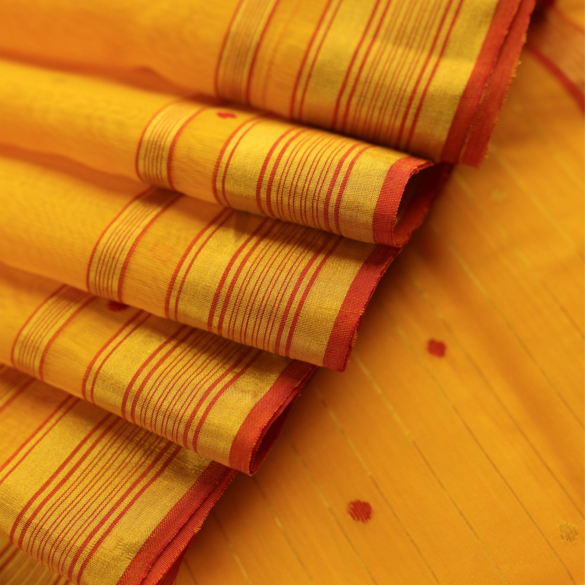 BASANT - Yellow Cotton Silk Chanderi Saree with Maroon Buttis