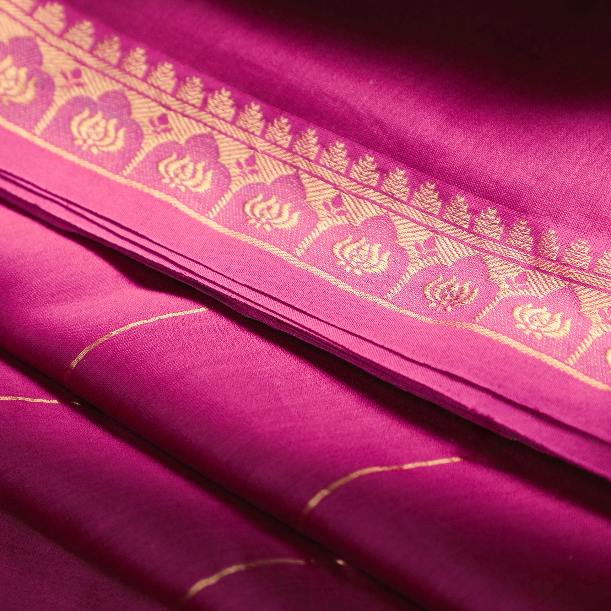 MAGNETIC MAGENTA - Dark Pink Cotton Silk Chanderi Saree with Lotus Motif on Border